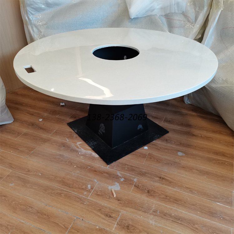 二、人造大理石火鍋?zhàn)溃喝嗽齑罄硎疱佔(zhàn)朗撬写罄硎疱佔(zhàn)乐斜容^常見(jiàn)的一種,隨著現(xiàn)代工藝的提高,人造大理石基本能滿(mǎn)足人們的需求,所以人造大理石火鍋?zhàn)涝诋?dāng)代的火鍋店里都是比較常見(jiàn)的火鍋?zhàn)?。人造大理石火鍋?zhàn)烙捎谑呛筇熘谱鞯?,所以人造大理石桌面比較容易滲油,易碎,重量重等缺點(diǎn),但由于大理石火鍋?zhàn)赖氖指泻?,檔次高,其還是當(dāng)下火鍋餐廳里的首選家具